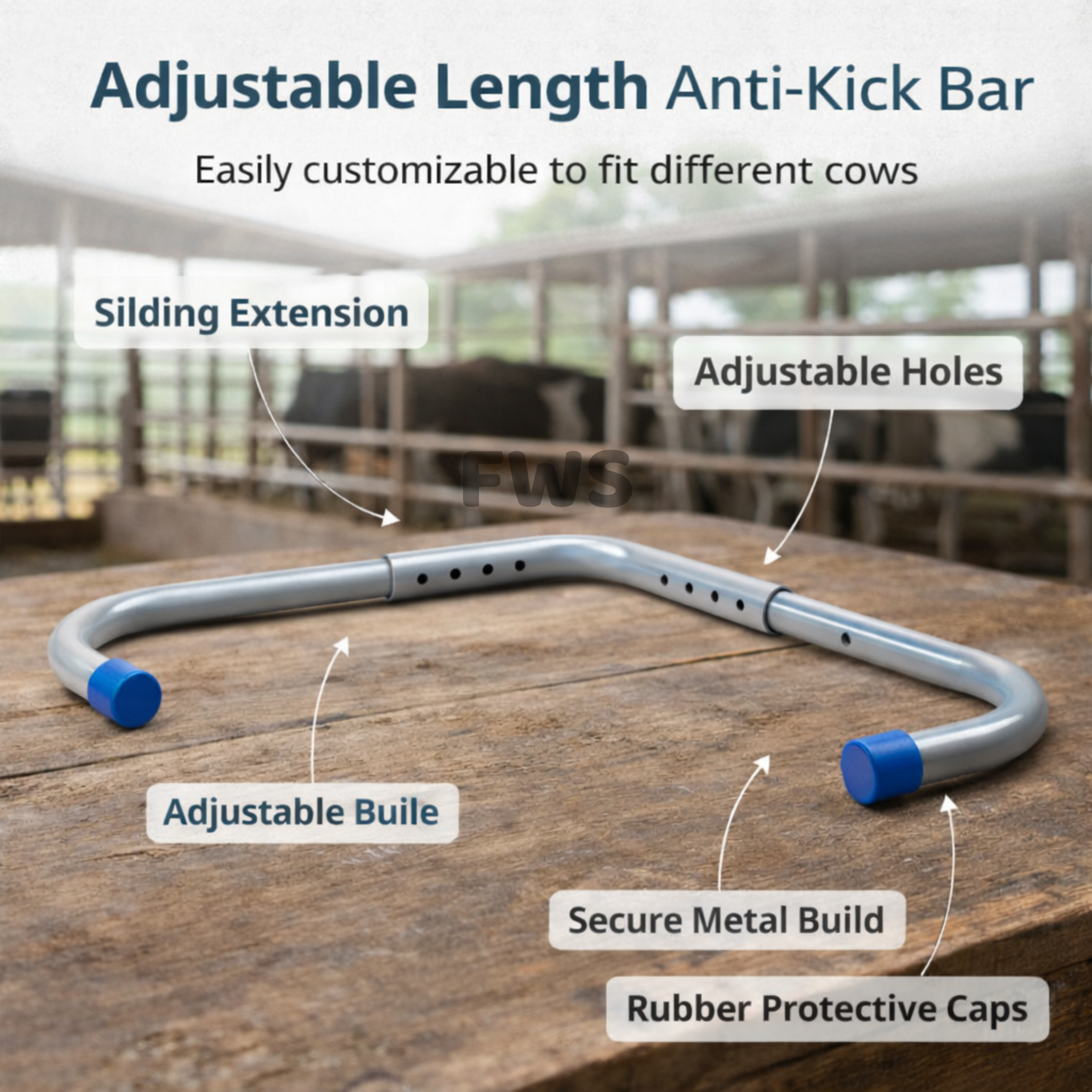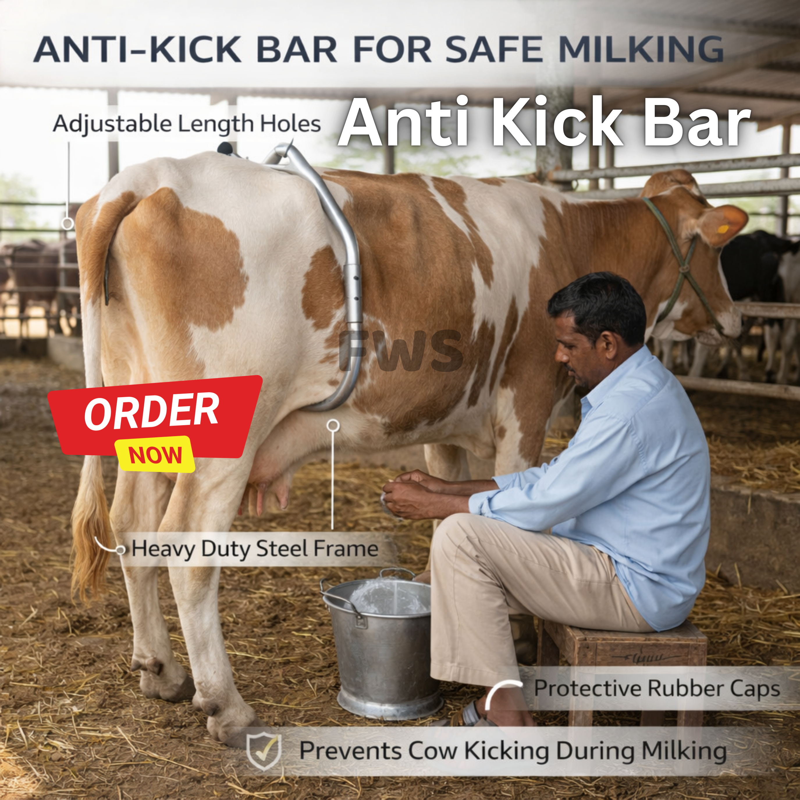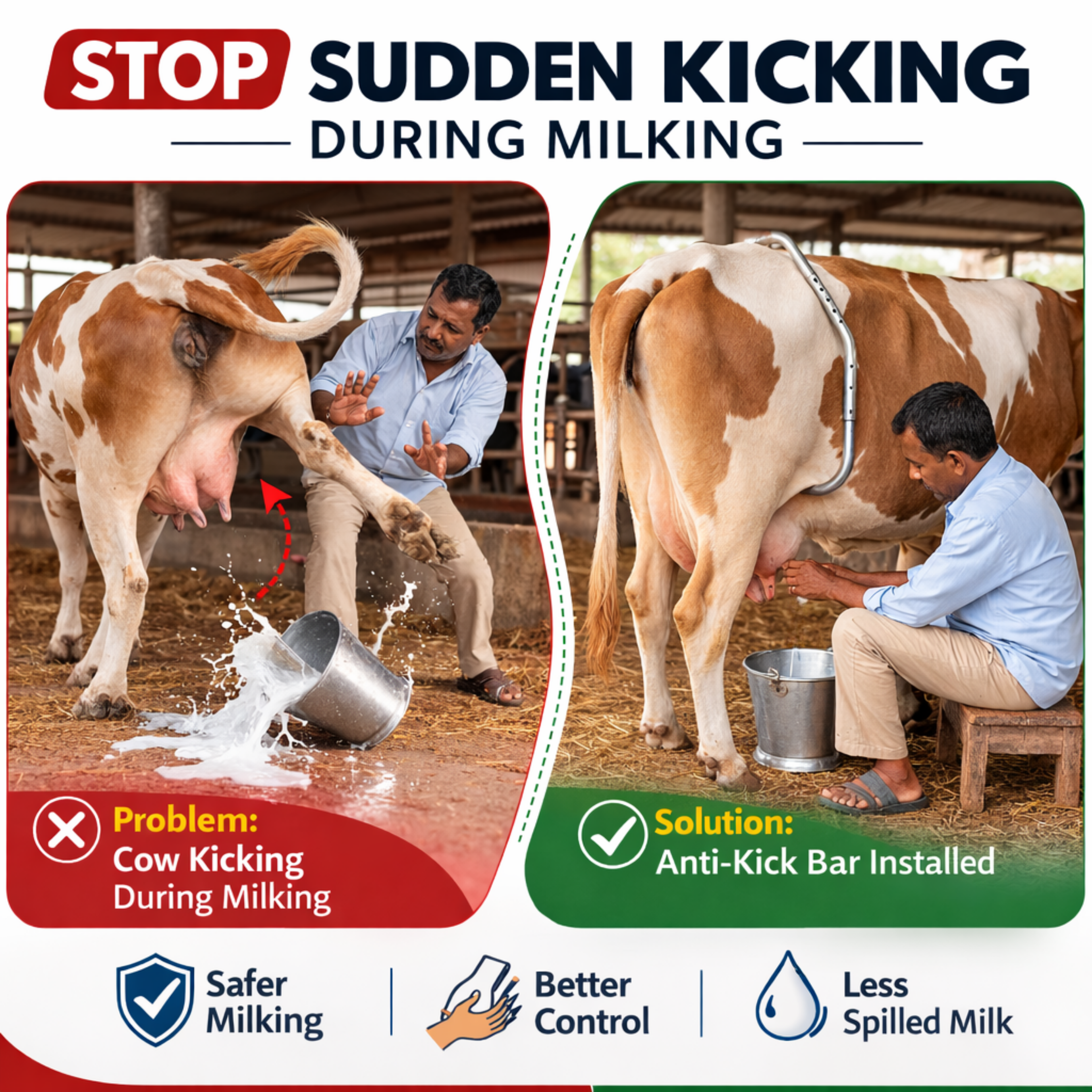 Heavy-duty and reliable anti-kick bar designed to ensure safe and smooth milking. Helps prevent sudden kicks, reduce milk spillage, and protect farmers from injury. Easy to use, adjustable, and suitable for daily dairy operations.